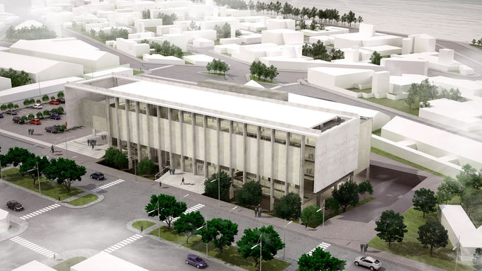 El edificio se concibe como una pieza de referencia urbana, con una impronta de monumento contemporáneo, austero, digno, representativo de una justicia eficiente y transparente.